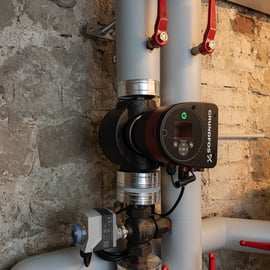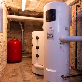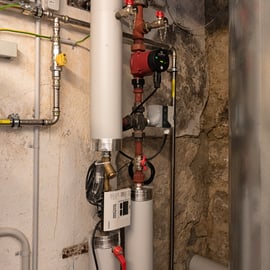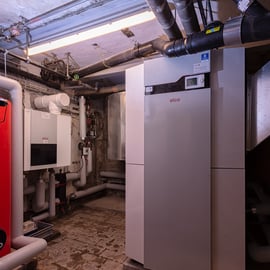 Planung und Installation einer Hybridheizung (bivalentes System mit Wärmepumpe und Gasheizkessel) für Gewerbe- und Wohnhaus – zuvor Rückbau von 3 separaten Gasheizkesseln.